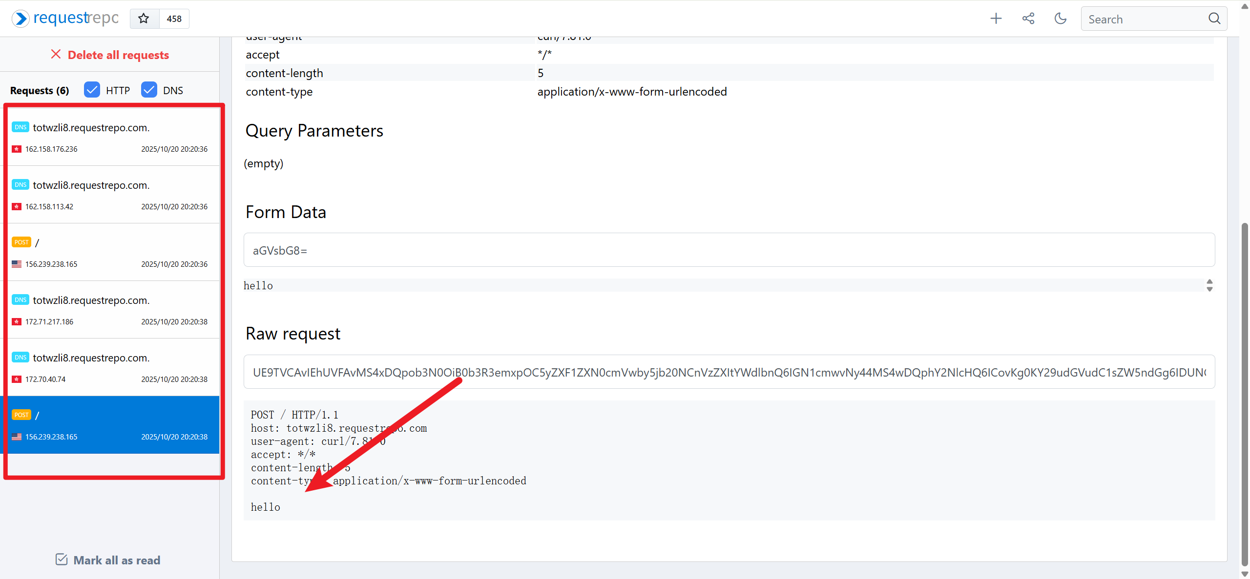 }远端观察 dnslog 地址,命令执行成功,成功接收到请求。
