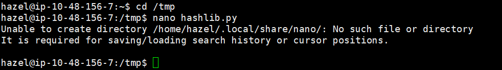 hazel@ip-10-48-156-7:/home$ cat /home/hazel/hasher.py这里看到 导入了 hashlib 库,为前面说的 标准库(stdlib)级别,即我们只需要在 "脚本所在目录 / 当前工作目录 / PYTHONPATH 环境变量指定的目录" 构建一个 hashlib 同名库,即可进行劫持。 但是由于上面说的脚本所在目录没有写权限,并且存在 所以我们选用 PYTHONPATH 环境变量指定的目录 进行劫持。