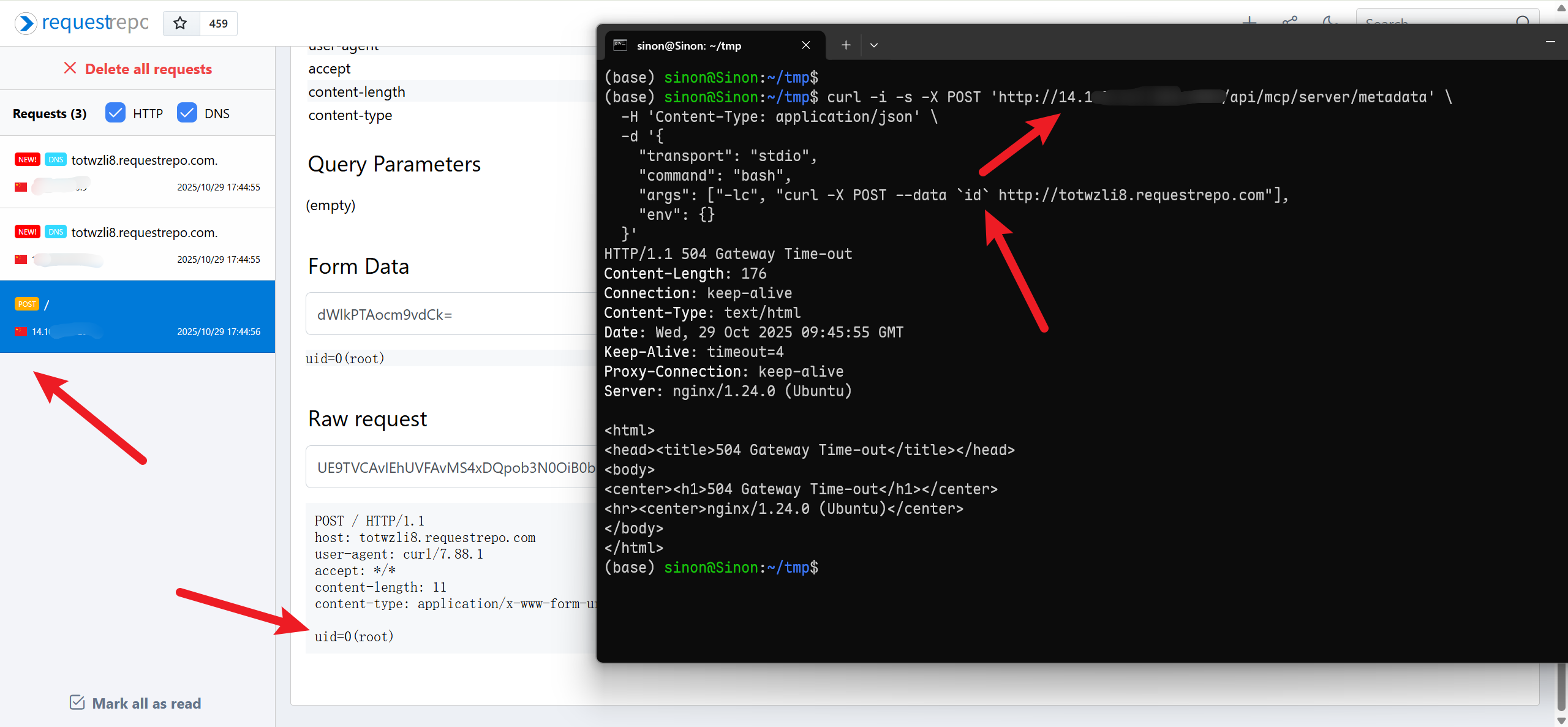 虽然 MCP 功能默认关闭,但作为该框架的核心卖点,大量用户在生产环境中均会开启 ENABLE_MCP_SERVER_CONFIGURATION=true (于网络空间中探测验证)。在开启该功能后,后端 /api/mcp/server/metadata 接口未对用户传入的连接参数进行任何身份验证或白名单过滤。